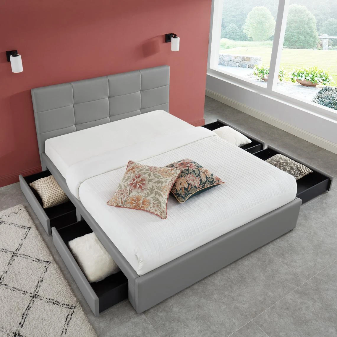 Points forts Baïta Lit à Tiroirs COLUMBIA Simili Gris 4 Tiroirs – 160x200cm