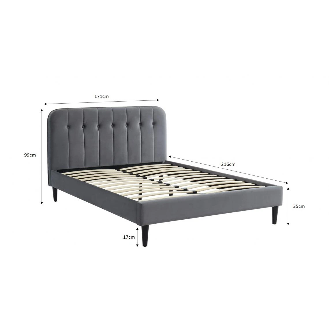 Lit André – Tête de lit capitonnée et matelassée L171xP10xH99cm – Revêtement en velours gris anthracite – Pieds en bois massif (H17cm) – Sommier inclus pour un couchage 160×200 – Dimensions : L171xP216xH99cm