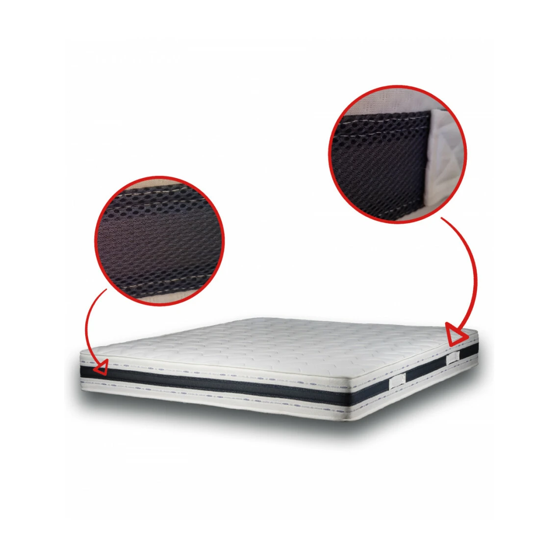 La Bande Laterale traspirante 3D: bloque la conduction de la chaleur et assure une aération continue. Il est idéal si vous avez des problèmes physiques : par exemple lumbago, discopathie ou hernie discale. La couche intérieure possède une plaque indéformable qu’accueille la colonne vertébrale, en lui permettant de s’étirer et se détendre pendant la nuit.
