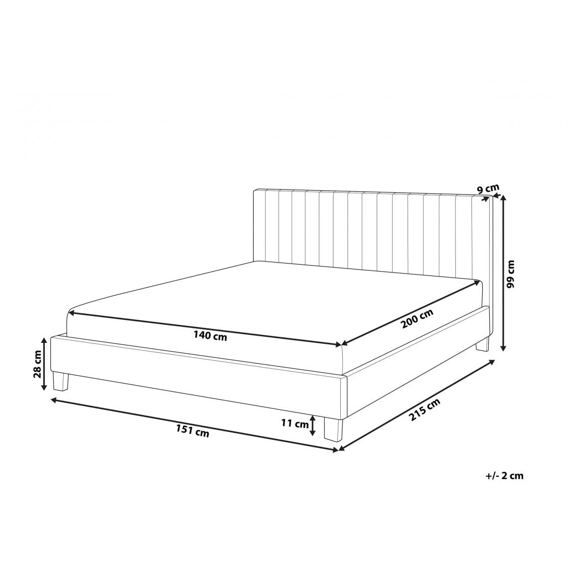 Lit double rembourré au style moderne avec sommier à lattes Une chambre à coucher moderne, minimaliste ou scandinave ça vous dit ? Ce superbe lit double vous offre à la fois tout le confort et beaucoup de style. Revêtu de tissu gris clair durable et facile à entretenir, il se caractérise par une haute tête de lit décorative, rembourrée et idéale pour s’adosser avec un bon roman en main. On adore son look épuré et élégant capable de s’intégrer dans la plupart des décors. Pour encore plus de confort, ce beau lit double est livré avec son sommier à lattes assorti. Ce dernier, robuste et solide, soutient parfaitement le matelas et assure un sommeil de qualité. *Si vous cherchez un matelas compatible avec ce lit double, n’allez pas loin. Découvrez notre large gamme de matelas à quelques clics d’ici ! Détails : – Type : Lit – Couleur : Gris – Matière : Polyester – Matière secondaire : 100% Polyester – Poids : 28 – Assemblage : À assembler entièrement – Caractéristiques : Exceptionnellement confortable, Cadre robuste, Fabrication et fintion irréprochables, Finition irréprochable, Style résolument contemporain – Couleur : Gris – Matière secondaire : Contreplaqué, Bois de peuplier – Style : Moderne – Surface de couchage : 140×200 cm – Informations supplémentaires : La hauteur du matelas sur la photo est de 20 cm – Charge admise : 300 kg – Hauteur des pieds : 11 cm – Hauteur : 99 cm – Largeur : 151 cm – Longueur : 215 cm – Tête de lit : 151×99 cm – Tissu rembourré : Non – Poids : 28 kg – Nuance : Gris clair – L’offre comprend : 1 x Cadre de lit, 1 x Sommier (26 lattes articulés), Matelas et parure de lit ne sont pas inclus – Conseil d’entretien : – Conseils d`entretien: – Aspirez en utilisant l’embout approprié – Nettoyez avec un shampooing sec ou une éponge humide et un nettoyant doux – Fiche technique : https://pictureserver.net/article_167779_french.pdf Conseils d`entretien: Aspirez en utilisant l’embout approprié Nettoyez avec un shampooing sec ou une éponge humide et un nettoyant doux Bénéficiez de nombreux avantages lors de votre achat avec Beliani: * Plus de 100,000 produits * Livraison gratuite * Droit de retour de 365 jours * Garantie jusqu’à 5 ans * Plus d’un million de clients satisfaits.
