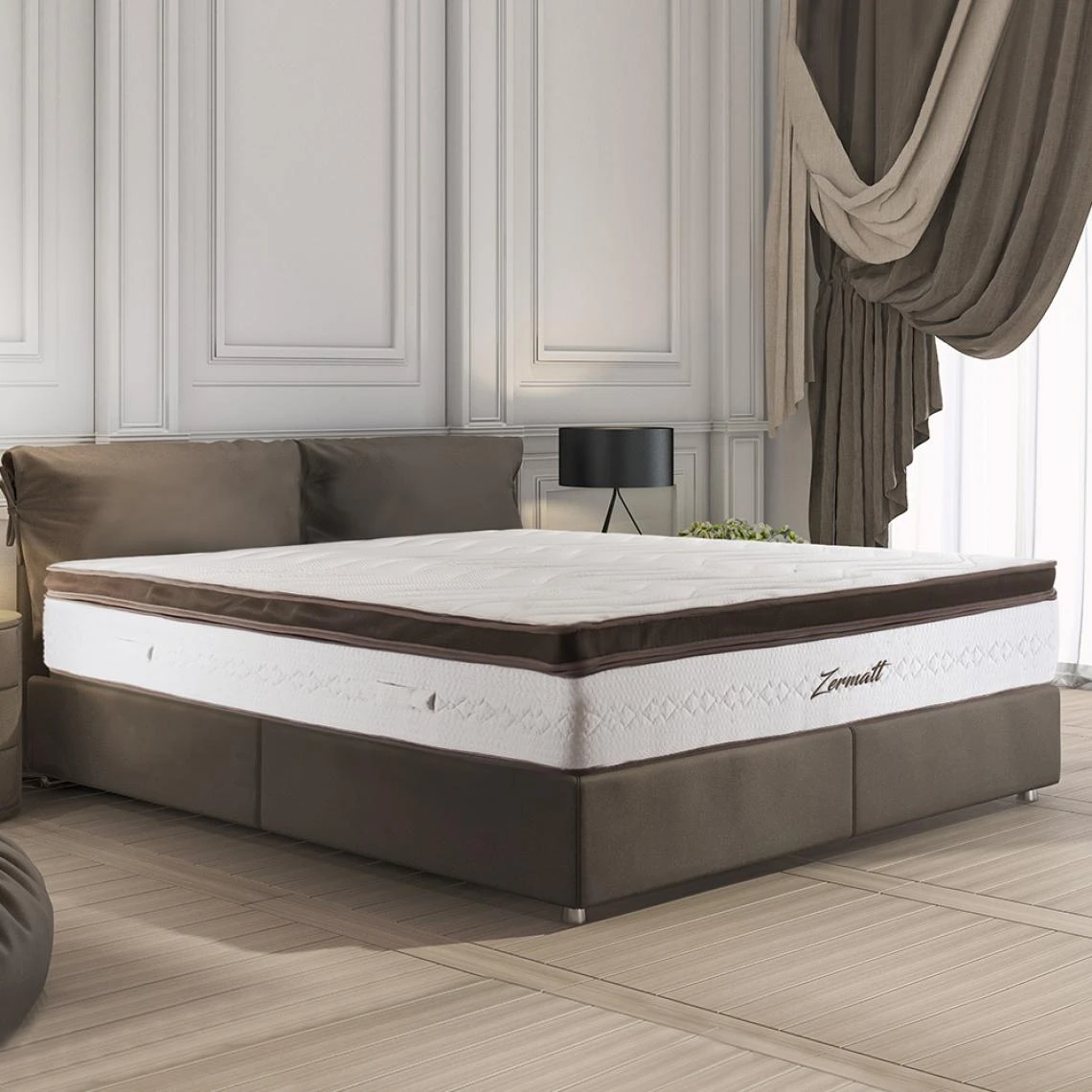 Offrez-vous une literie digne d’une suite hôtelière 5 étoiles ! Bellecour, grâce à son expertise et son savoir-faire spécifiques au secteur de la literie haut-de-gamme, propose des matelas et sommiers fabriqués à partir de matériaux de qualité et aux finitions soignées. Fabricant français, tous nos produits sont labellisés CertiPUR et Oeko-Tex. Le matelas Zermatt est un matelas hybride aux belles finitions conçu pour répondre aux critères des plus exigeants. Sa bi-technologie lui confère un confort optimal : la mousse à mémoire de forme apporte au corps une ergonomie parfaite et la mousse Haute Résilience un excellent soutien. Réversible, il offre deux faces climatiques. Une face hiver en cachemire pour un accueil chaleureux et une face été avec un tissu 3D à cellules ouvertes pour favoriser l’aération de la surface de couchage. Bien-être et sommeil réparateur assurés !