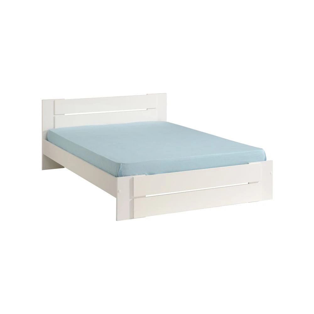 Garantie :2 ans , Pièces . Structure :Panneaux de particules revêtus de papier décor blanc . Couchage en cm :140 x 190 cm . A monter soi-mêmeOui . Vendu sans matelasVendu sans cadre à lattes ni matelas . Vendu sans sommierCompatible avec un cadre à lattes 140×190 cm . Dimensions en cm :L. 146 X P. 194,5 X H. 75 cm . Tête et pied de lit :Blanc brillant . Dispo pcs détachées donnée fournisseur :Zéro an .