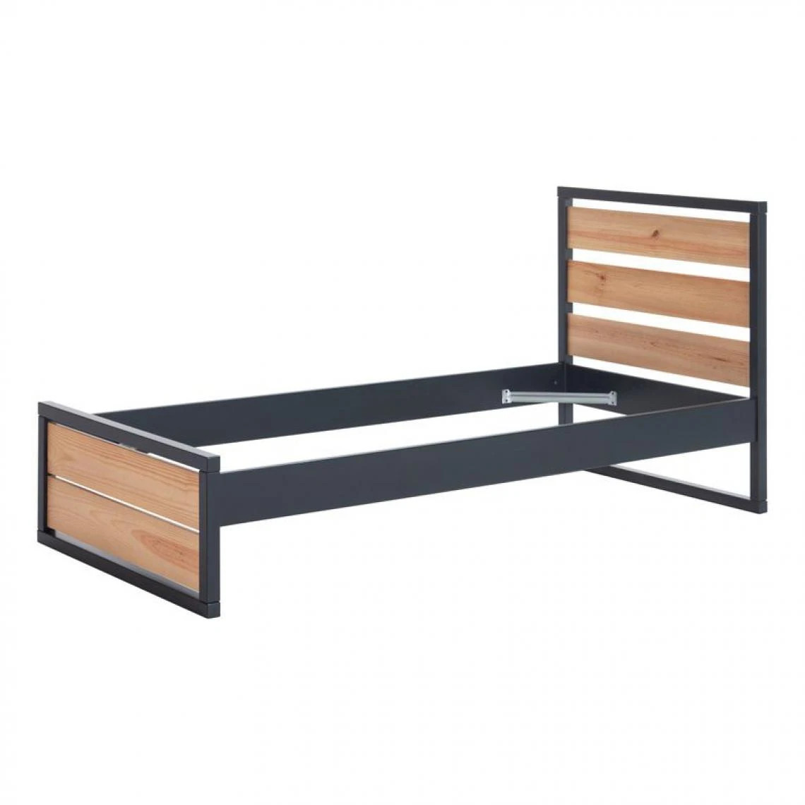 Finition :laqué gris anthracite. . Garantie :2 ans. . Structure :panneaux de fibres de moyenne densité. . Couchage en cm :90 x 190 (sans matelas). . A monter soi-même. . Vendu sans matelas. . Vendu sans sommier. . Dimensions en cm :l. 98,5 – H. 102,5 – L. 200. . Tête et pied de lit :pin massif vernis couleur chêne. . Conforme aux normes en vigueur. . Dispo pcs détachées donnée fournisseur :NC. .
