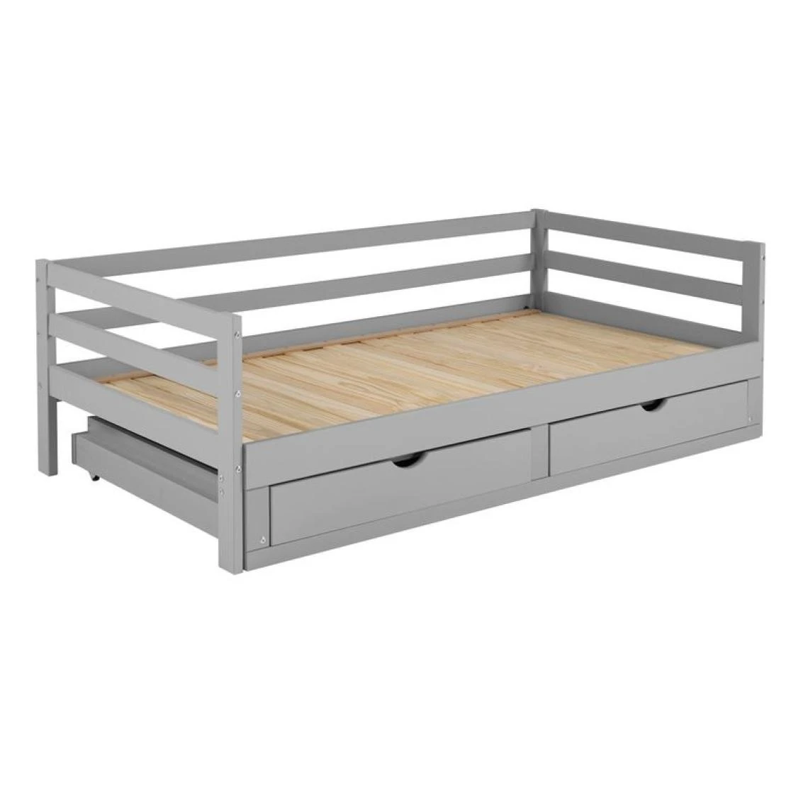 Convertible en couchage 2 personnes.. 2 tiroirs de rangement intégrés.. Bois massif. Existe en blanc..