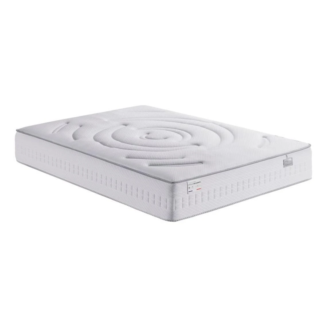 Ressorts :Ressorts ensachés Sensoft Evolution – Ceinture de maintien en mousse polyuréthane . Nombre de ressorts :651 resssorts . Garnissage :Mousse de confort 10 mm, 22 kg/m3 – Ouate Dacron 300 gr/m3 – Latex perforé 40 mm, 65 kg/m3 – Complexe fibres recyclées 320 gr/m3 . Coutil :Coutil plateau : 62% polyester, 38% viscose. Coutil plates bandes et face technique : 100% polyester . Epaisseur totale :28 cm de hauteur . Couchage en cm :140 x 190 cm . Garantie :5 ans .