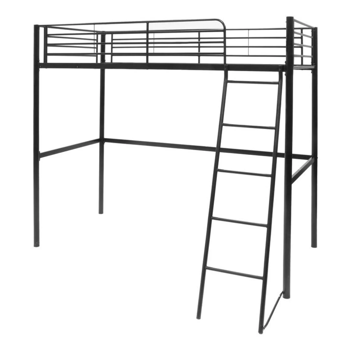 Sommier :lattes en acier encastrées avec connexions en polypropylène. . Garantie :2 ans. . Structure :acier époxy noir. . Couchage en cm :90X190 (sans matelas). . Vendu sans matelas. . Dimensions en cm :l. 96,2 – H. 182,5 – L. 198,2. . A monter soi-même :. . Conforme aux normes en vigueur. . Dispo pcs détachées donnée fournisseur :NC. . Le couchage en hauteur ne convient pas à des enfants de moins de six ans. .