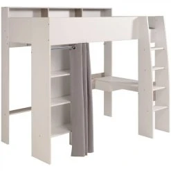 Sommier :Sommier en panneaux de particules revêtu papier décor 1 face blanc/1 face brut inclus. . Finition :Papier décor blanc et gris loft. . Garantie :2 ans, pièces . Structure :En panneaux de particules revêtu papier décor blanc et gris loft. . Couchage en cm :90×200 cm. Hauteur maximum du matelas 13 cm. . Vendu sans matelas. . Dimensions en cm :l. 131,7 – H. 193 – L. 204,5 cm. . A monter soi-même :. . Conforme aux normes en vigueur. . Dispo pcs détachées donnée fournisseur :NC . Le couchage en hauteur ne convient pas à des enfants de moins de six ans. .