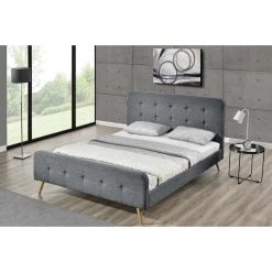 Points forts Concept Usine Lit Lanka – Cadre de lit scandinave gris foncé avec pieds en bois – 160×200