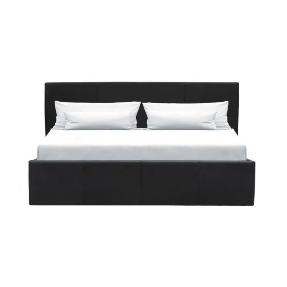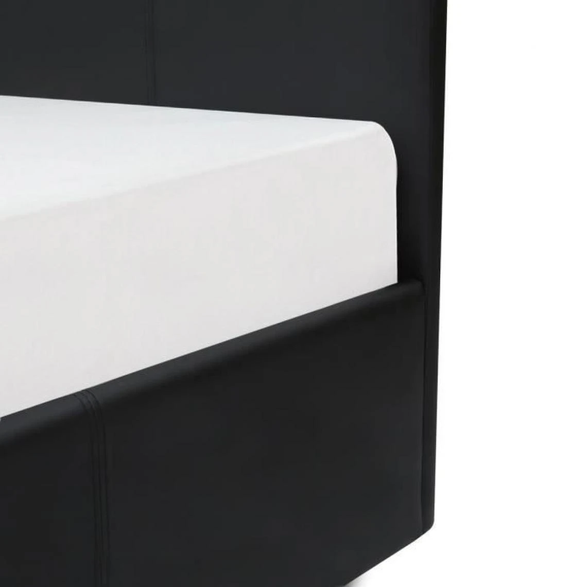 lit en pu avec sommier lattes en bois et coffre de rangement, coloris noir.
