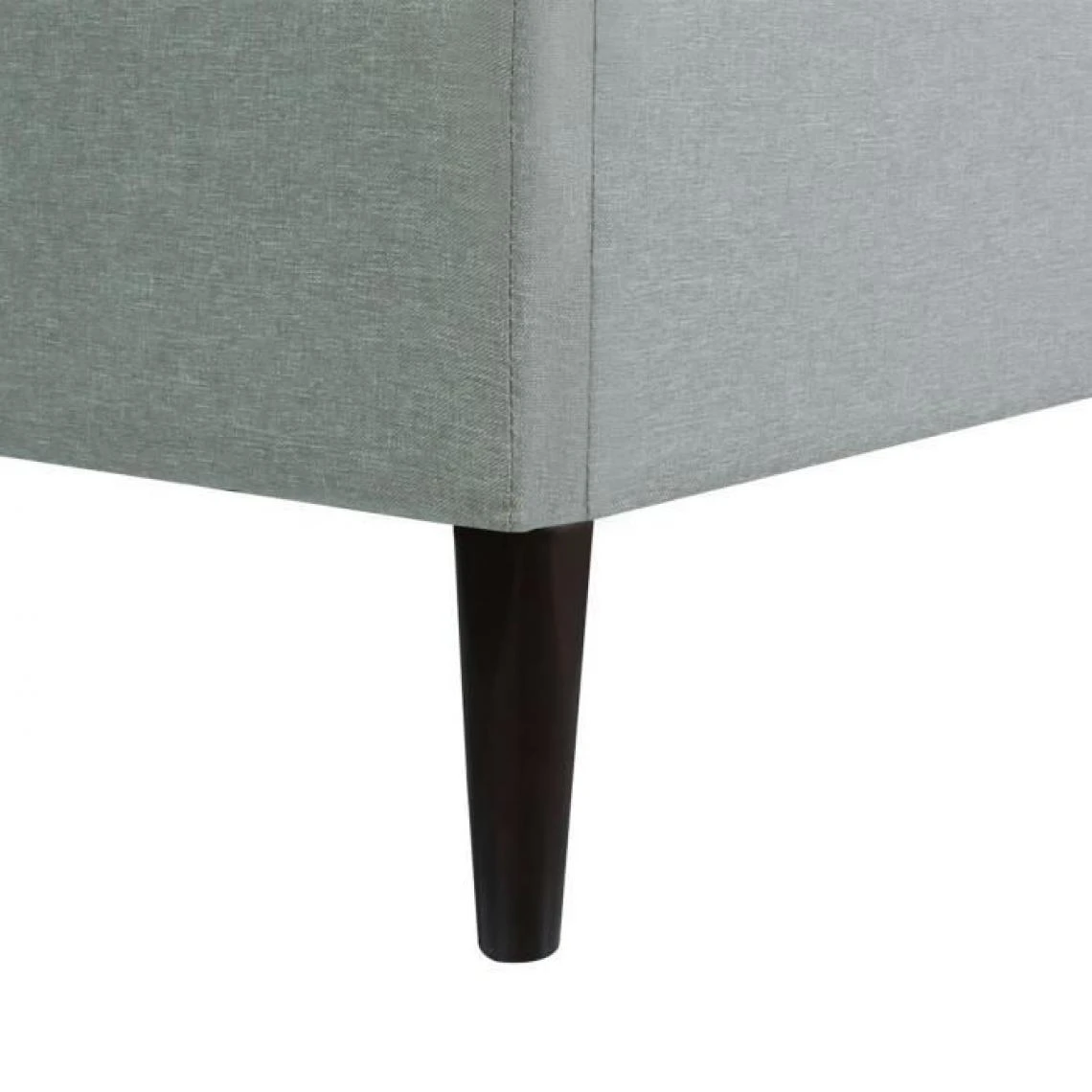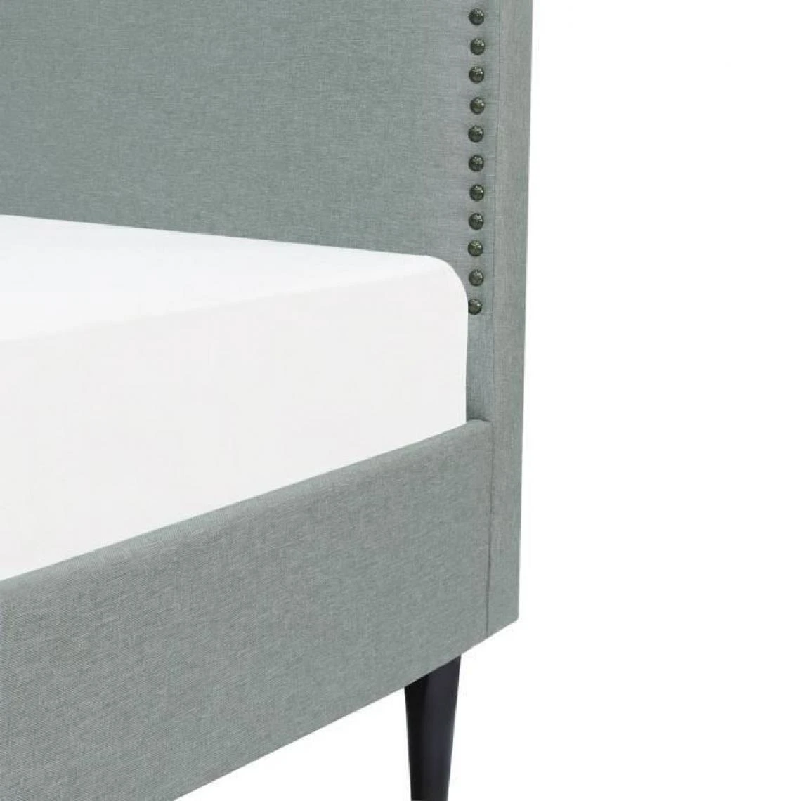 Points forts Cstore NAILHEADS – lit adulte classique – tissu gris clair – tête de lit cloutée et pieds bois – sommier inclus – l 160xl 200 cm