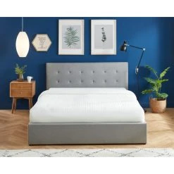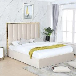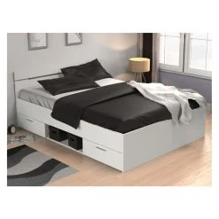 Lit double rembourré Ce lit double élégant sera le choix parfait pour votre chambre grâce à son rembourrage en similicuir de qualité et sa forme arrondie. Un éclairage LED est intégré dans la tête de lit qui permet de renforcer l’ambiance de votre maison avec 6 couleurs disponibles. Matière : PU similicuir mat Couleur : noir avec bordure blanc Dimensions extérieures (lo x la) : ca. 221 x 189 cm Surface de couchage (lo x la) : 200 x 180 cm ( matelas non inclus) Hauteur de tête de lit : 83 cm Contenu de la livraison : 1 x lit double 1 x sommier à lattes 1 x télécommande pour l’éclairage LED L’oreiller, le matelas, la couverture et les objets déco ne font pas partie de l’offre.