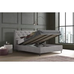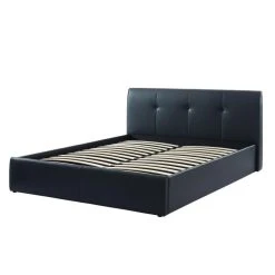 Points forts Decoshop26 Lit double 2 personnes capitonné LED 180x200cm en cuir synthétique noir avec sommier à lattes 03_0005334