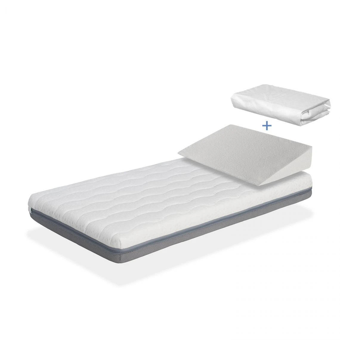Points forts Dormalit Pack matelas KALA 70×140 cm H 11cm + plan incliné 15°+ Protège matelas 70×140 cm.Déhoussable et lavable
