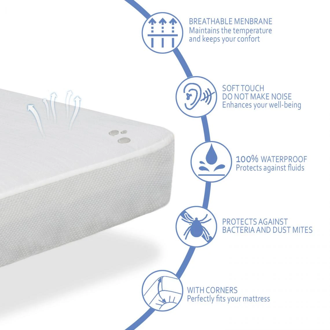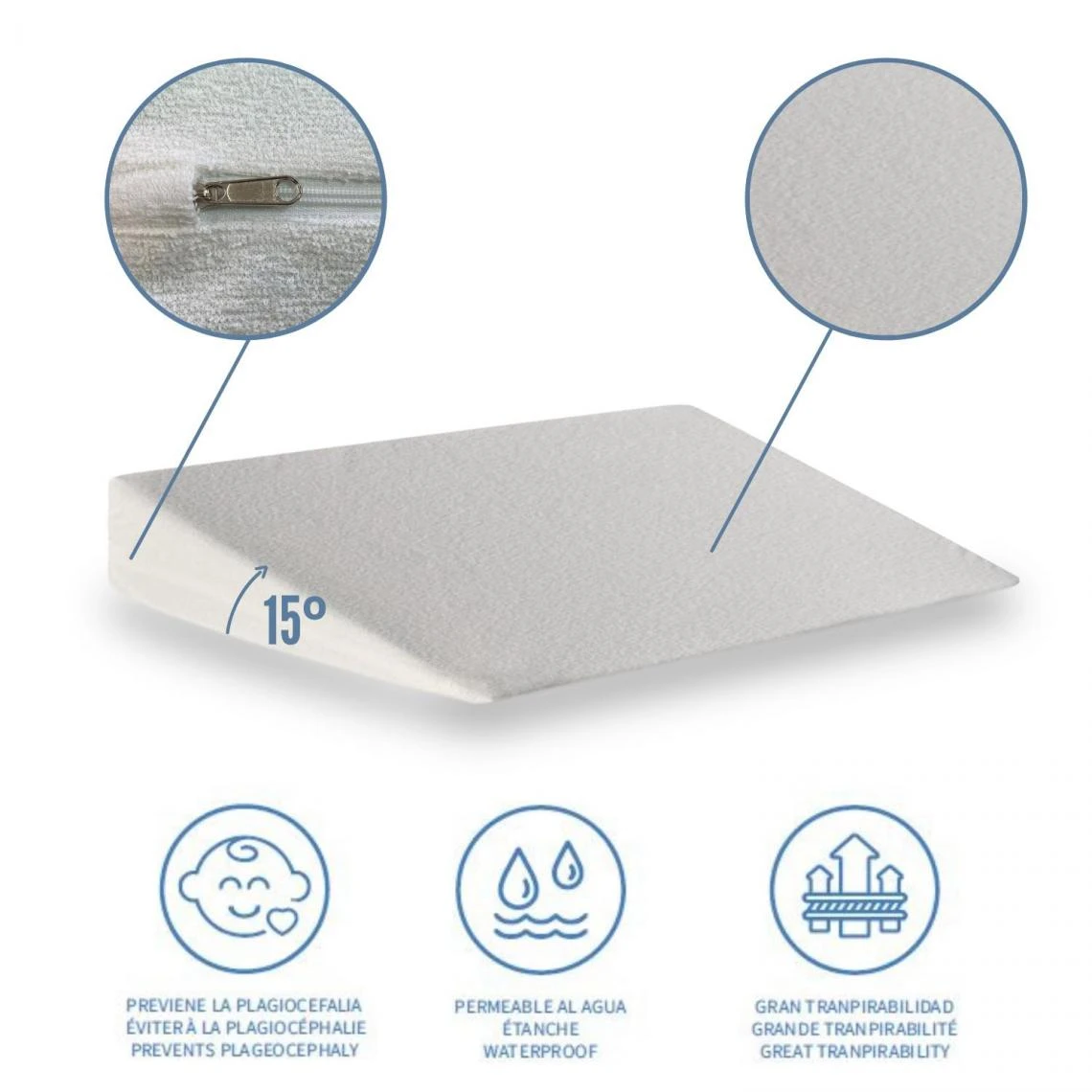Matelas déhoussable. La housse extérieure est faite de tissu Stretch doux et élastique sur la face supérieure. Cette housse extérieure est rembourrée avec fibres hypoallergénique qui combattent naturellement la prolifération des allergies et aident à protéger le repos de notre bébé. La face inférieure est formée de tissu 3D hautement respirant qui contribue à réduire la chaleur et l’accumulation de CO2. En outre, il dispose d’une housse intérieure en tissu de protection multi-élastique qui facilite le retrait de la housse.