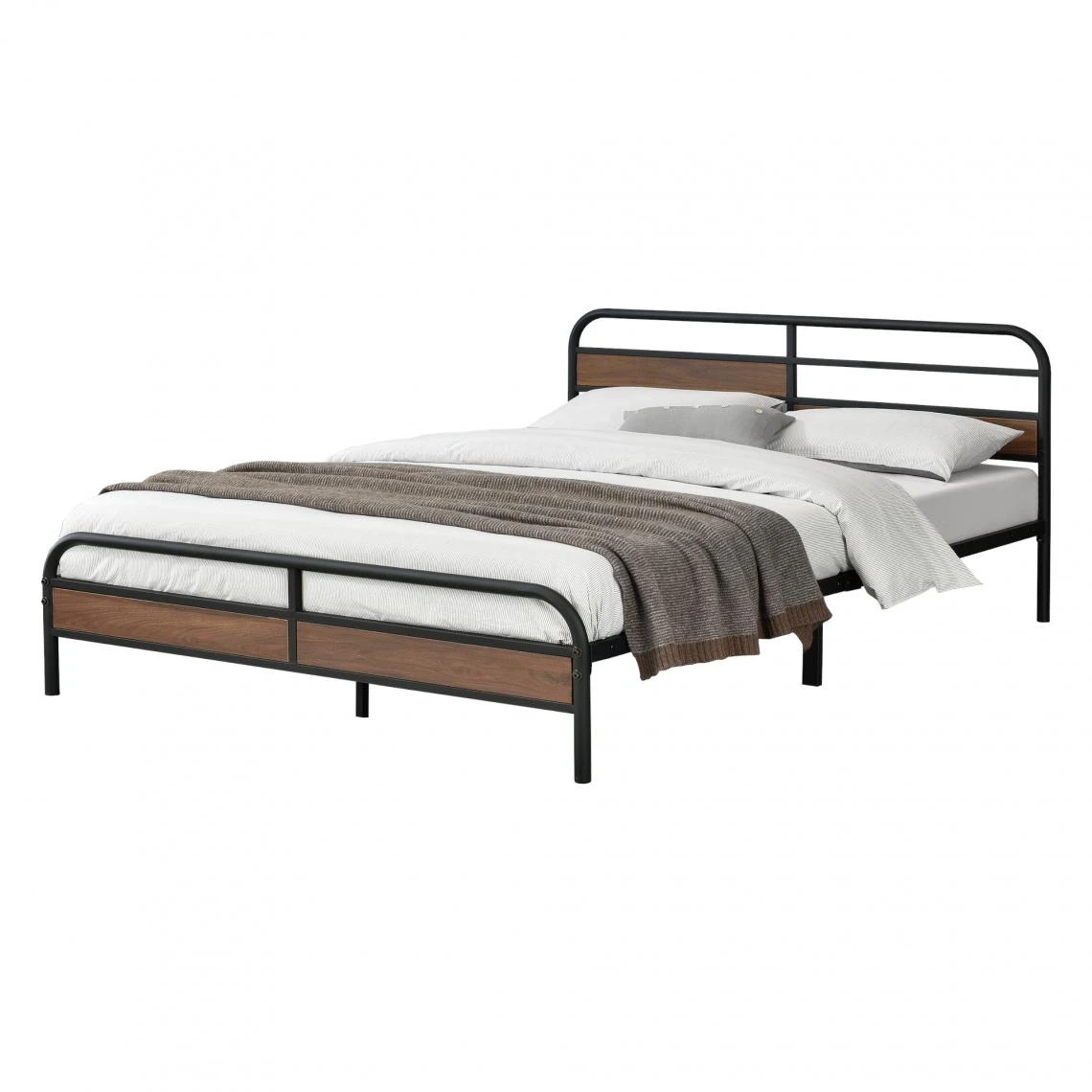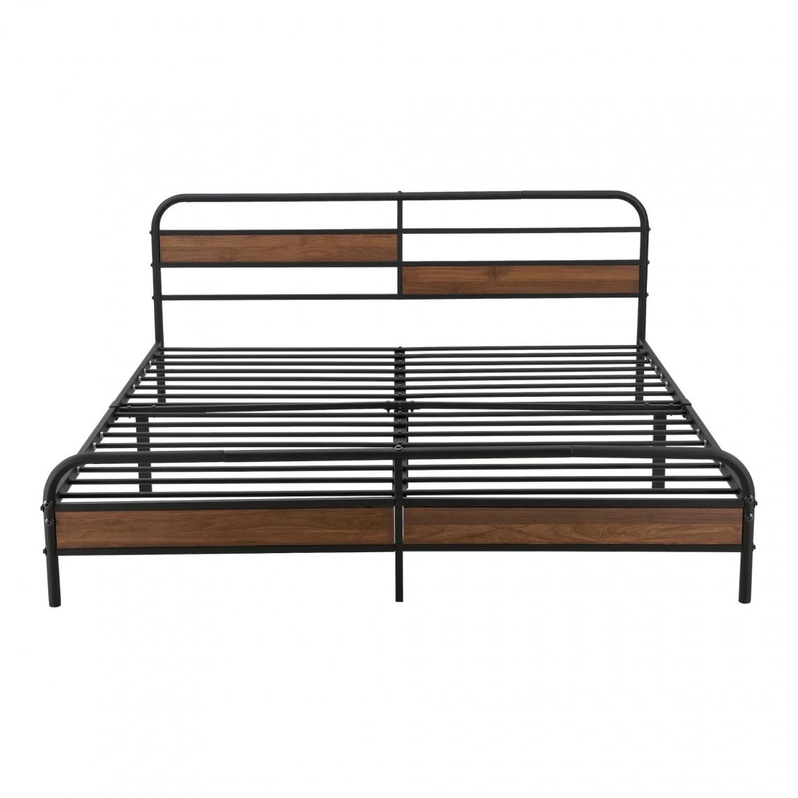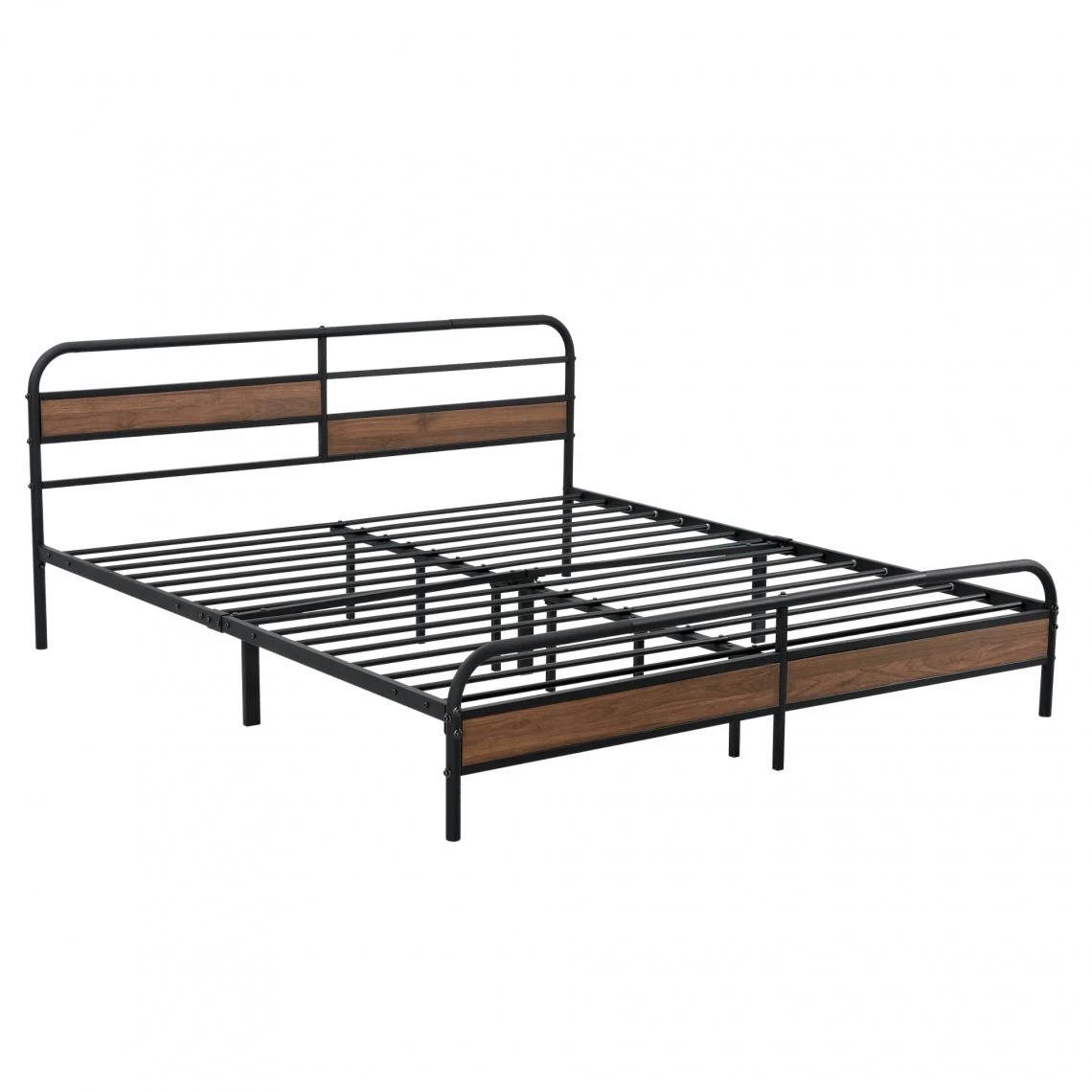 Points forts En.Casa Cadre de Lit Double Aarau en Métal 180 x 200 cm Noir Mat Effet Noyer [en.casa]