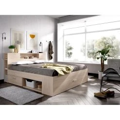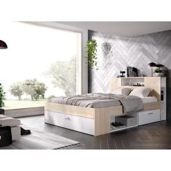 Vente-unique Lit Avec Tête De Lit Rangements Et Tiroirs – 140 X 190 Cm – Coloris :…
