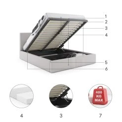 Interbeds Lit Rembourré Hilton Avec Rangement 180×200 En Gris Clair