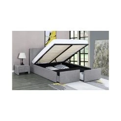 Points forts Fournier Decoration FLOKI LIT COFFRE LIN GRIS CLAIR 140X190 CM 2 TIROIRS