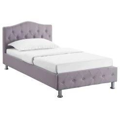 … offre un aspect classique mais original avec son revêtement en tissu capitonné, et sa tête de lit courbée avec boutons et couture décorative attirera tous les regards. Son style à la fois contemporain et baroque apportera une touche de design dans votre chambre à coucher, ou dans celle de votre enfant, et s’accordera facilement avec votre mobilier. La stabilité du lit est assurée par 4 pieds robustes en métal chromé et renforcée par la présence d’une traverse centrale et de 2 pieds de soutien supplémentaire sous le sommier à lattes, ce dernier est inclus dans la livraison.