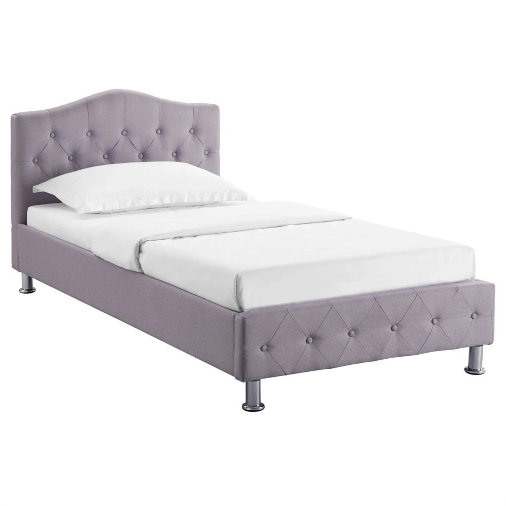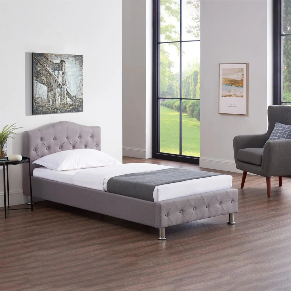 Points forts Idimex Lit simple pour adulte ou enfant BIARRITZ 90×190 cm 1 place / 1 personne avec sommier et pieds en métal chromé, tissu capitonné gris
