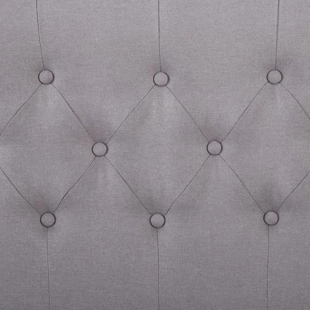 – La structure du lit est recouverte d’un revêtement en tissu capitonné de coloris gris.
