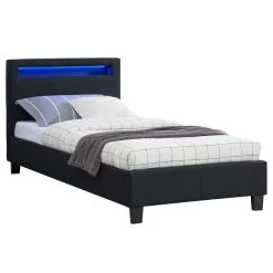 … apportera à coup sûr une touche de modernité dans votre chambre ou dans celle de votre enfant. Sa tête de lit rembourrée contient un éclairage LED, dont vous pourrez modifier à volonté la couleur et les effets de lumière selon vos envies. Le design élégant de ce lit est également marqué par son revêtement en synthétique. La stabilité du lit est assurée par 4 pieds robustes et renforcée par la présence d’une traverse centrale et de 2 pieds de soutien supplémentaire sous le sommier à lattes, ce dernier est inclus dans la livraison.