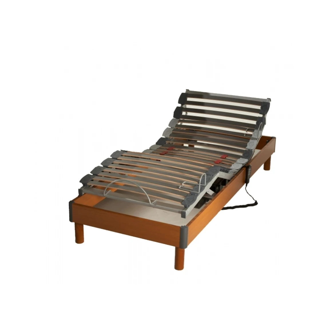 Découvrez les avantages et le confort de ce sommier de relaxation à lattes finition bois merisier.