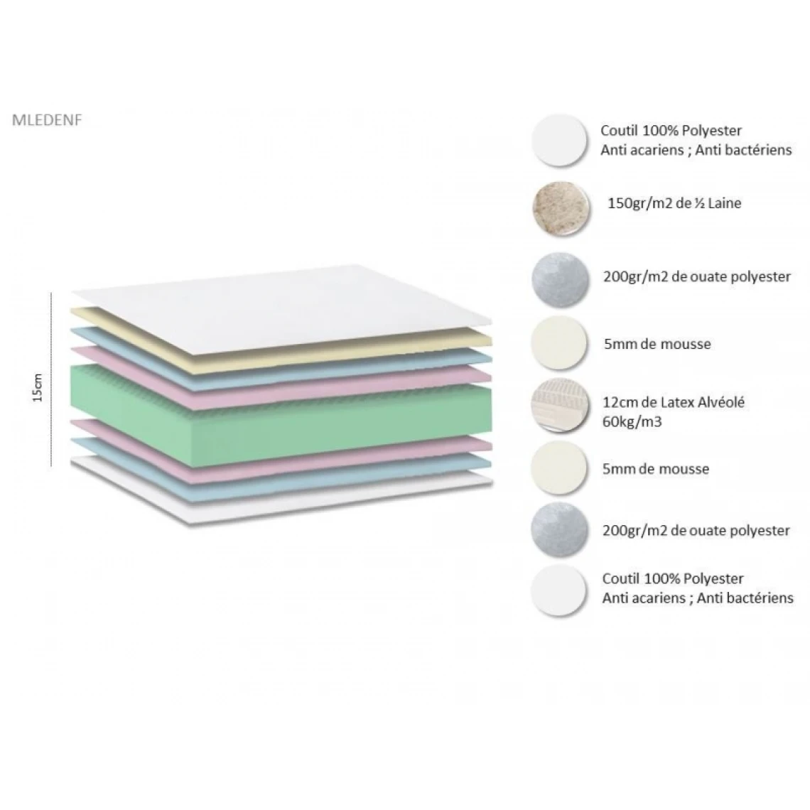 Ame : 14 cm de Latex alvéolé et aéré d’une densité de 78 kg/m3 brut