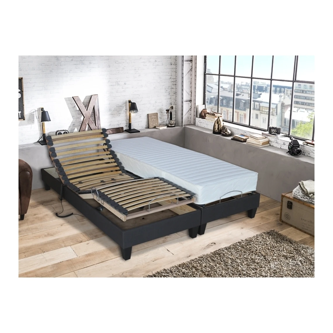 Sommier électrique entourage tissu Gris Anthracite 5 plis de couchage