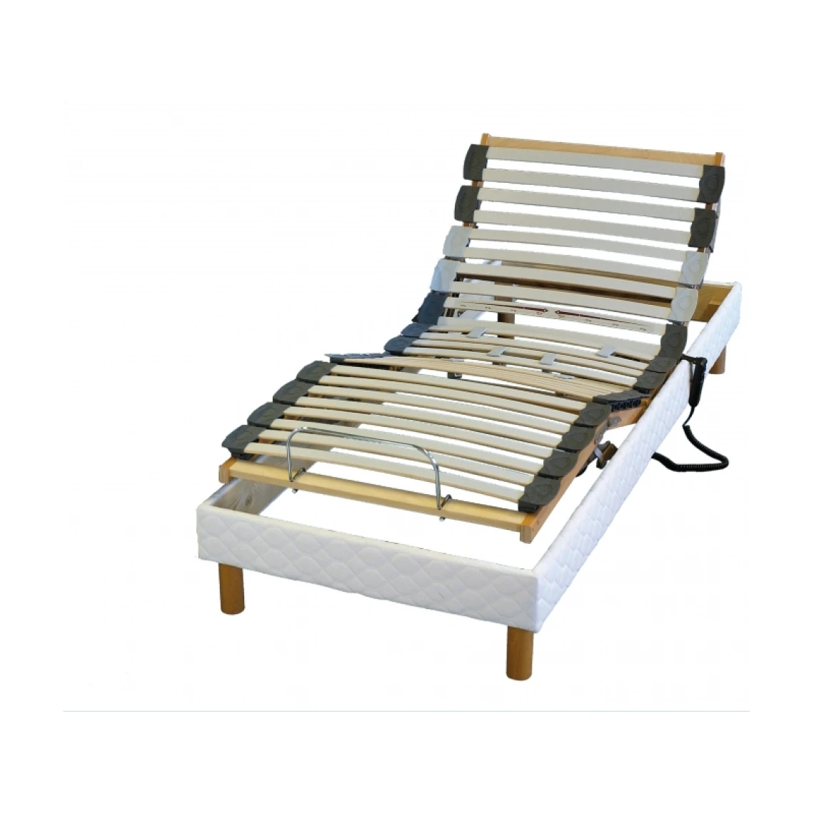 Découvrez les avantages et le confort de ce sommier de relaxation à lattes finition tissu matelassé blanc.