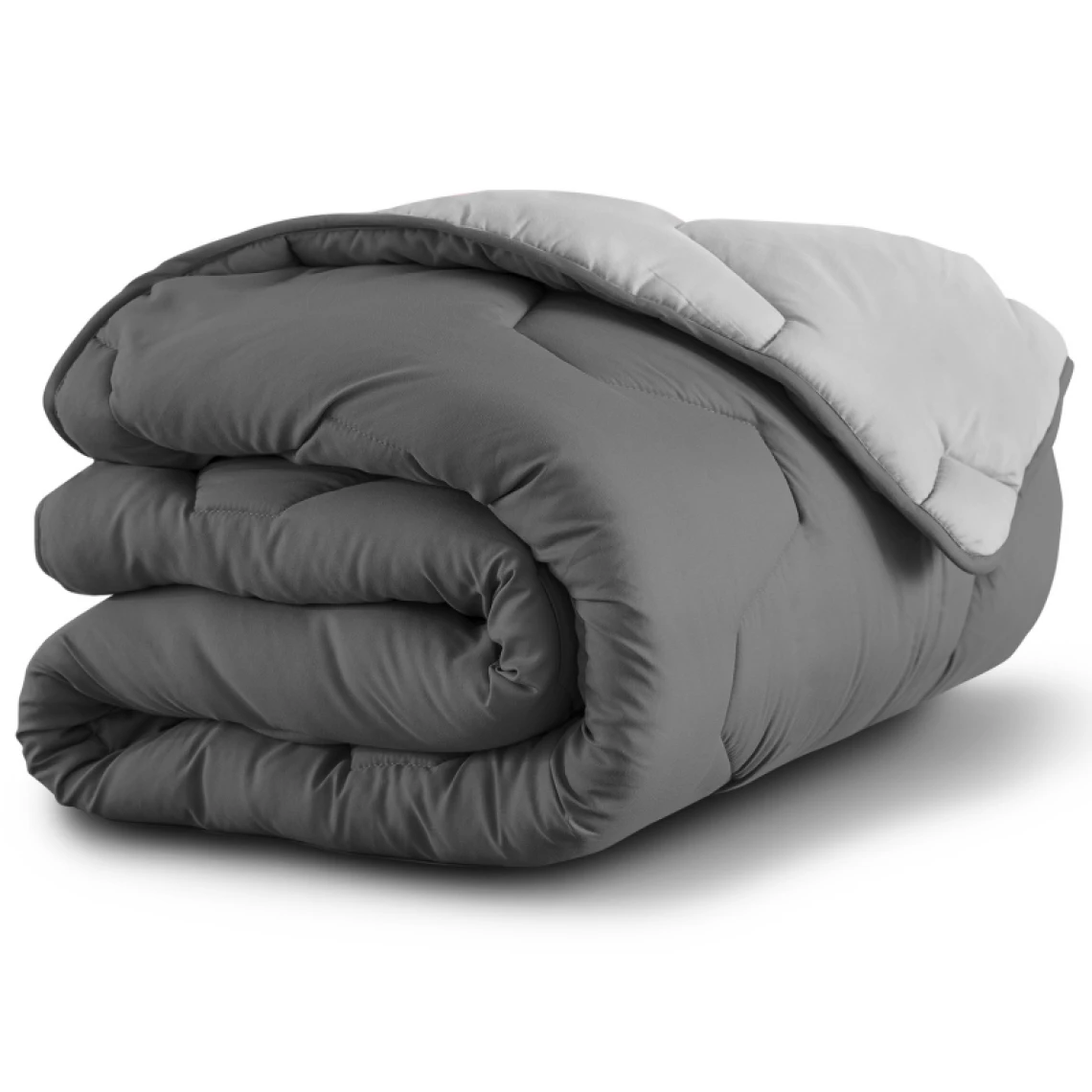 Points forts Idmarket Couette 220×240 CM ABBY bicolore gris clair et gris 300 gr + 2 oreillers