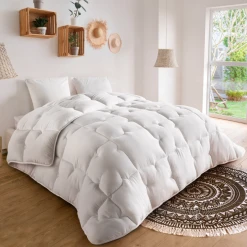 Points forts Idmarket Couette 220×240 CM ELLIE blanche microfibre 700 gr + 2 oreillers