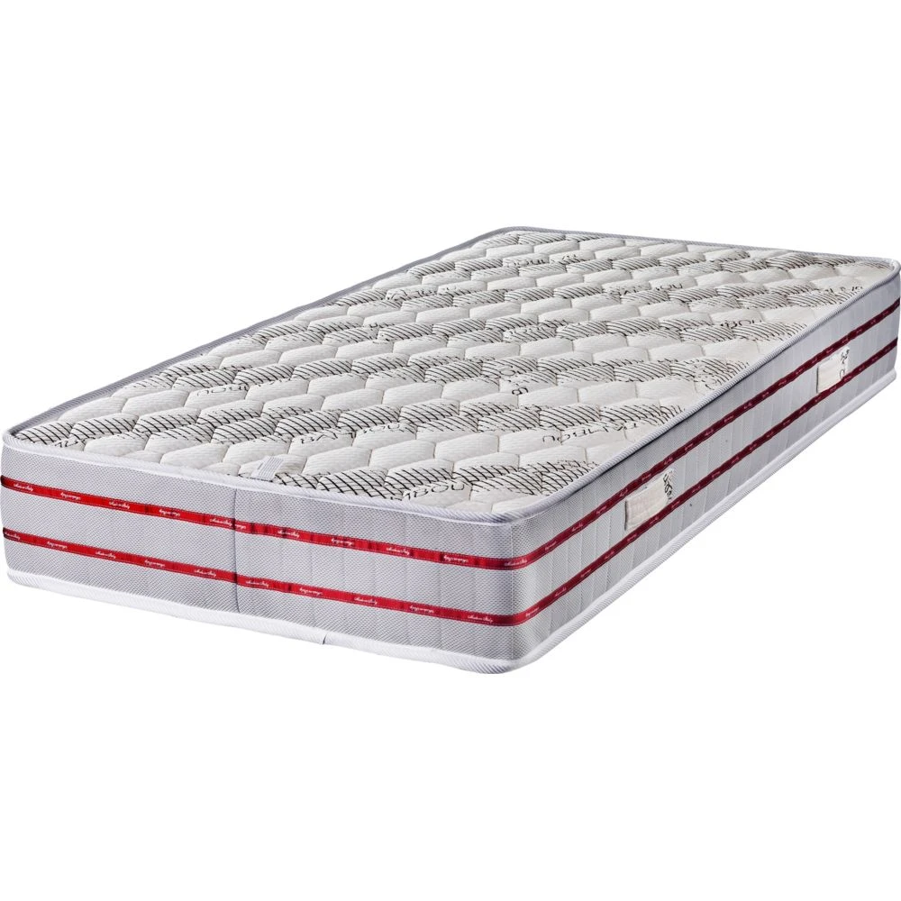 Ce matelas certifié Certi-pur et OEKO-TEX STANDARD 100 – sans CFC fait une hauteur de 24 CM , possède deux faces de couchage pour une plus longue durée de vie et deux poignées pour le manipuler facilement – il est hyper respirant gràce à sa bande latérale tridimensionnelle – Il a un Accueil : Ferme et un Soutien : Très Ferme , une ¢me de 20 cm – le matelas est livré roulé