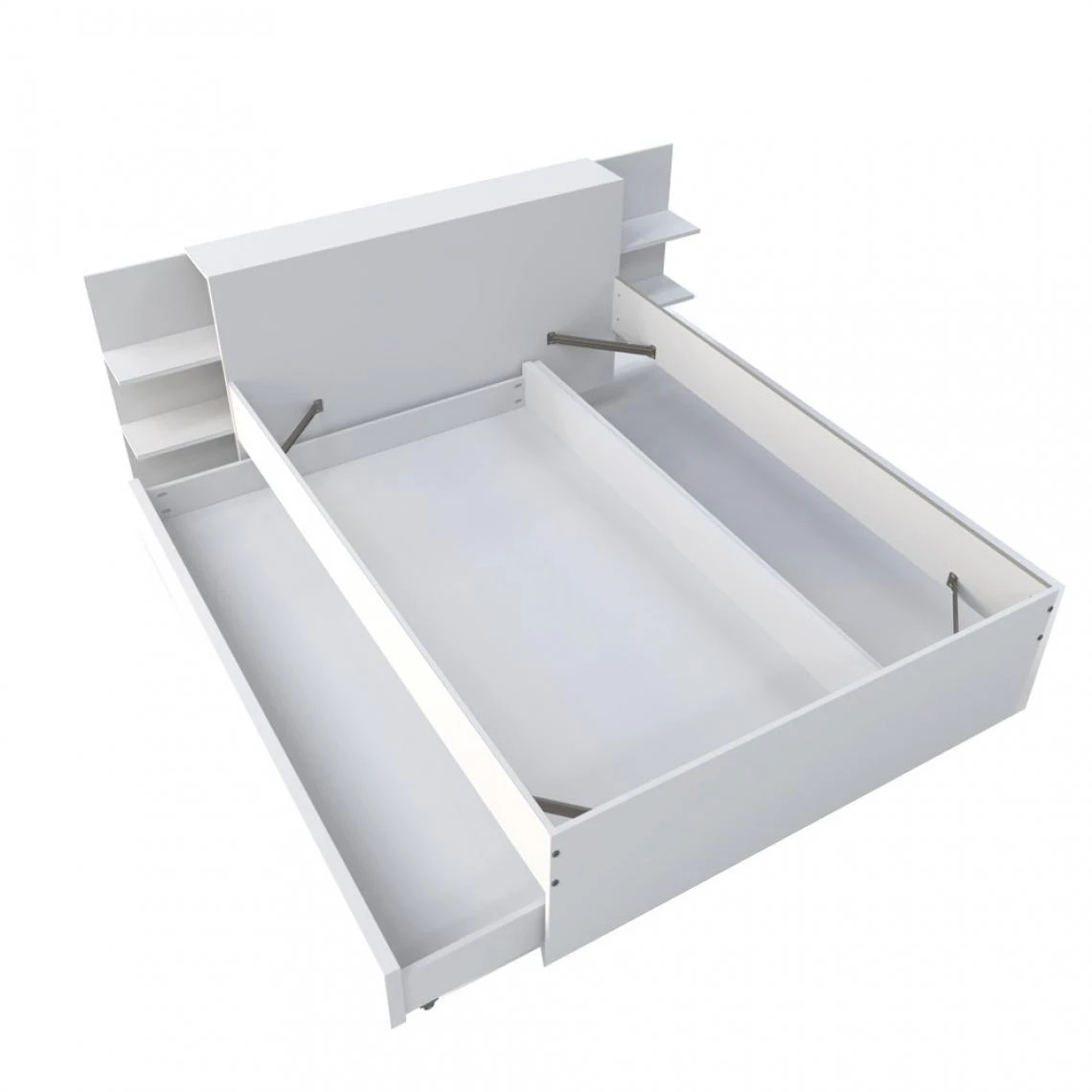 Lit CITY 140x190cm + tête de lit étagère chevet + 1 tiroir de rangement traversant