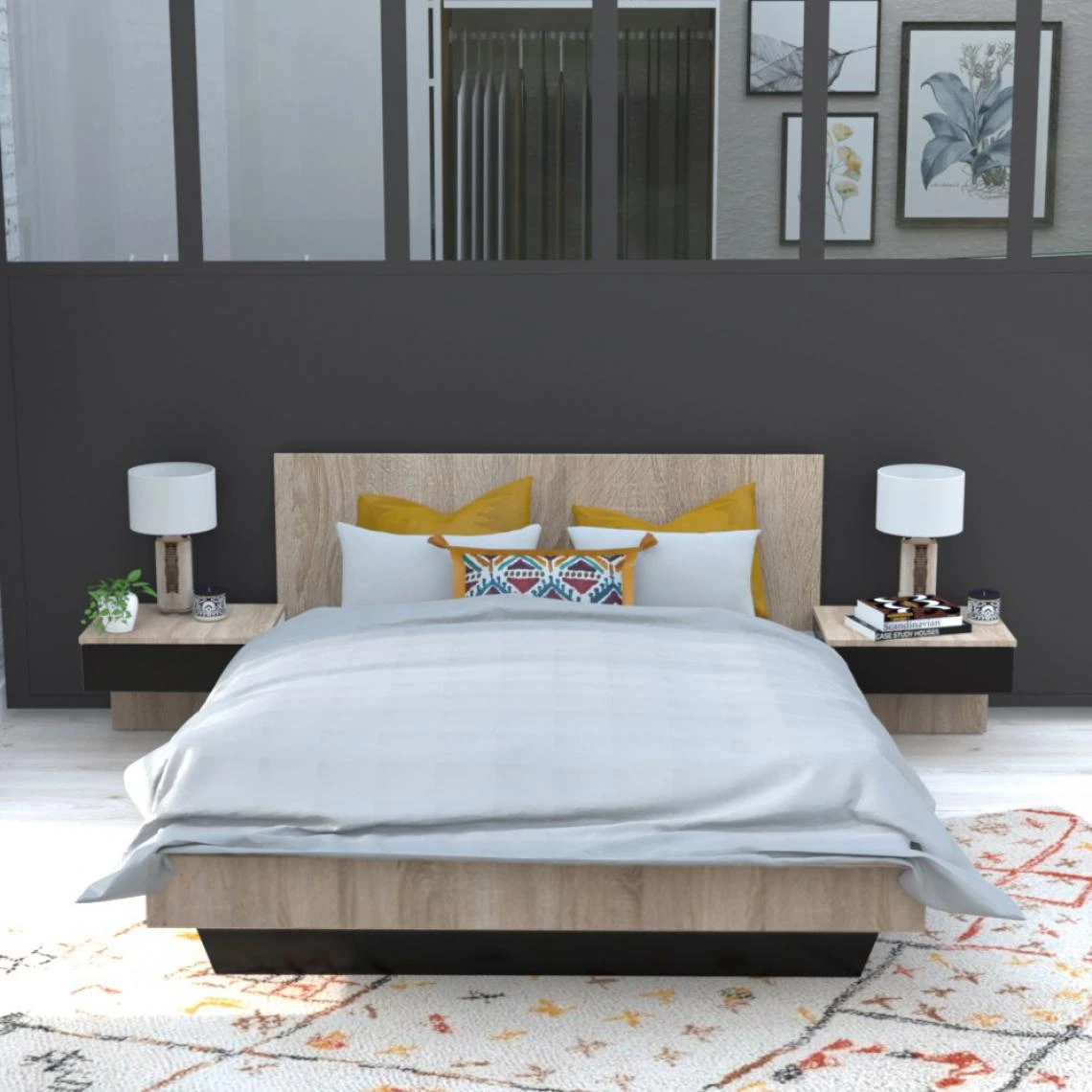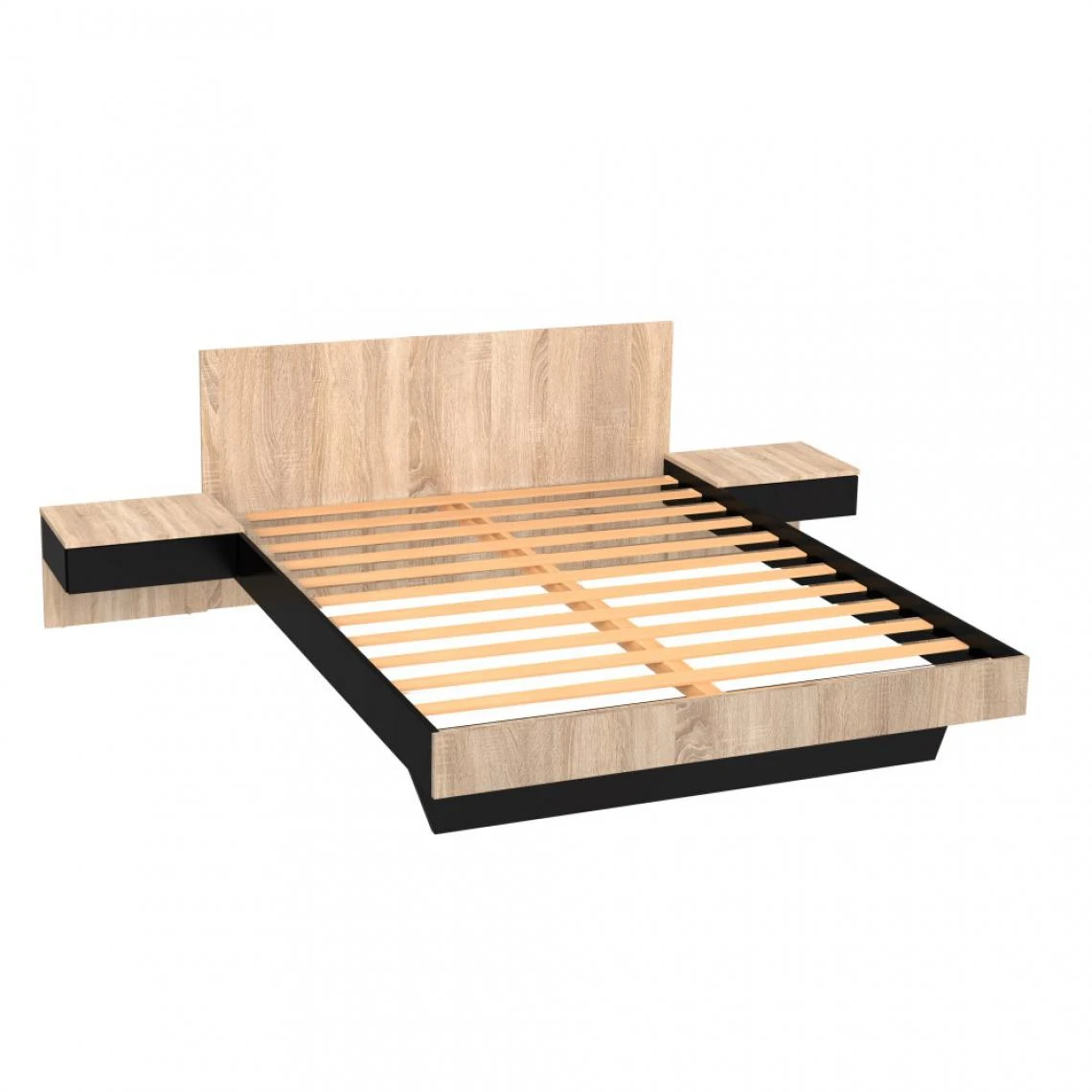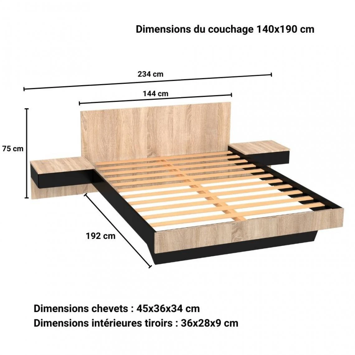 Points forts Le Quai Des Affaires Lit COOL 140×190 cm + 2 chevets + sommier / Noir & chêne blanchi