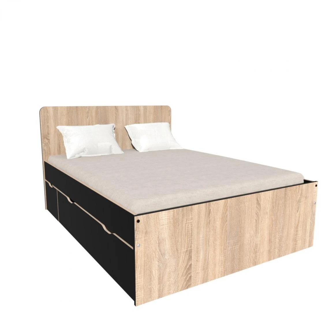Points forts Le Quai Des Affaires Lit double ZENIA 140×190 + 2 chevets + 2 tiroirs / Chêne blanchi & noir