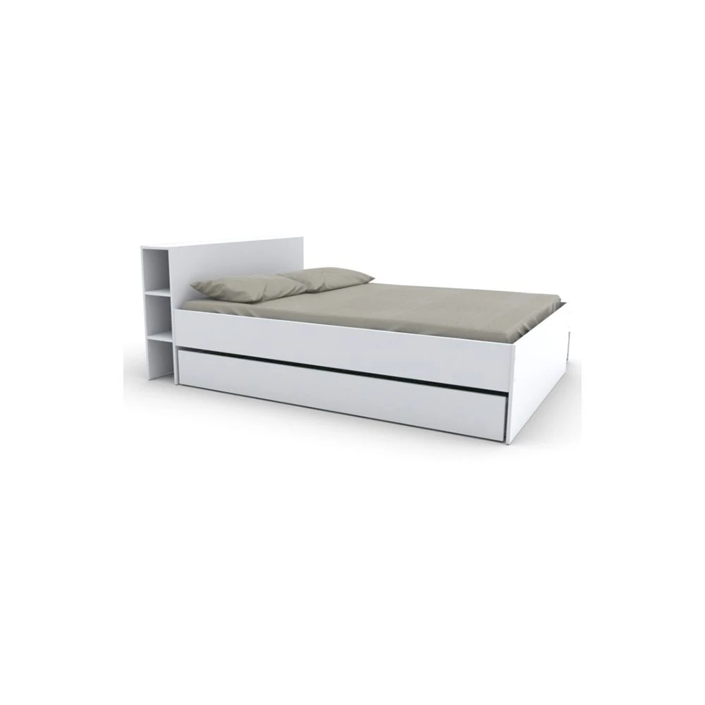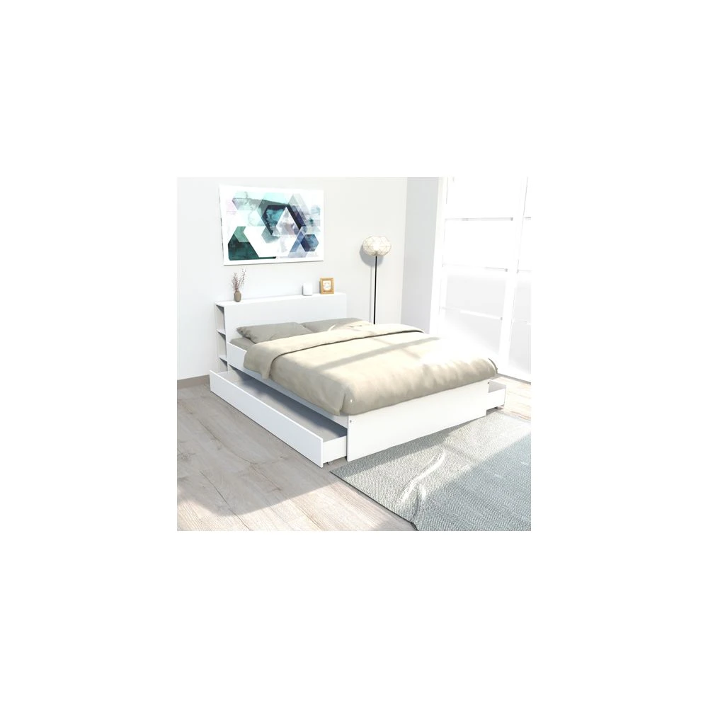Lit RIGA 160x200cm + tête de lit étagère + 2 tiroirs de rangements