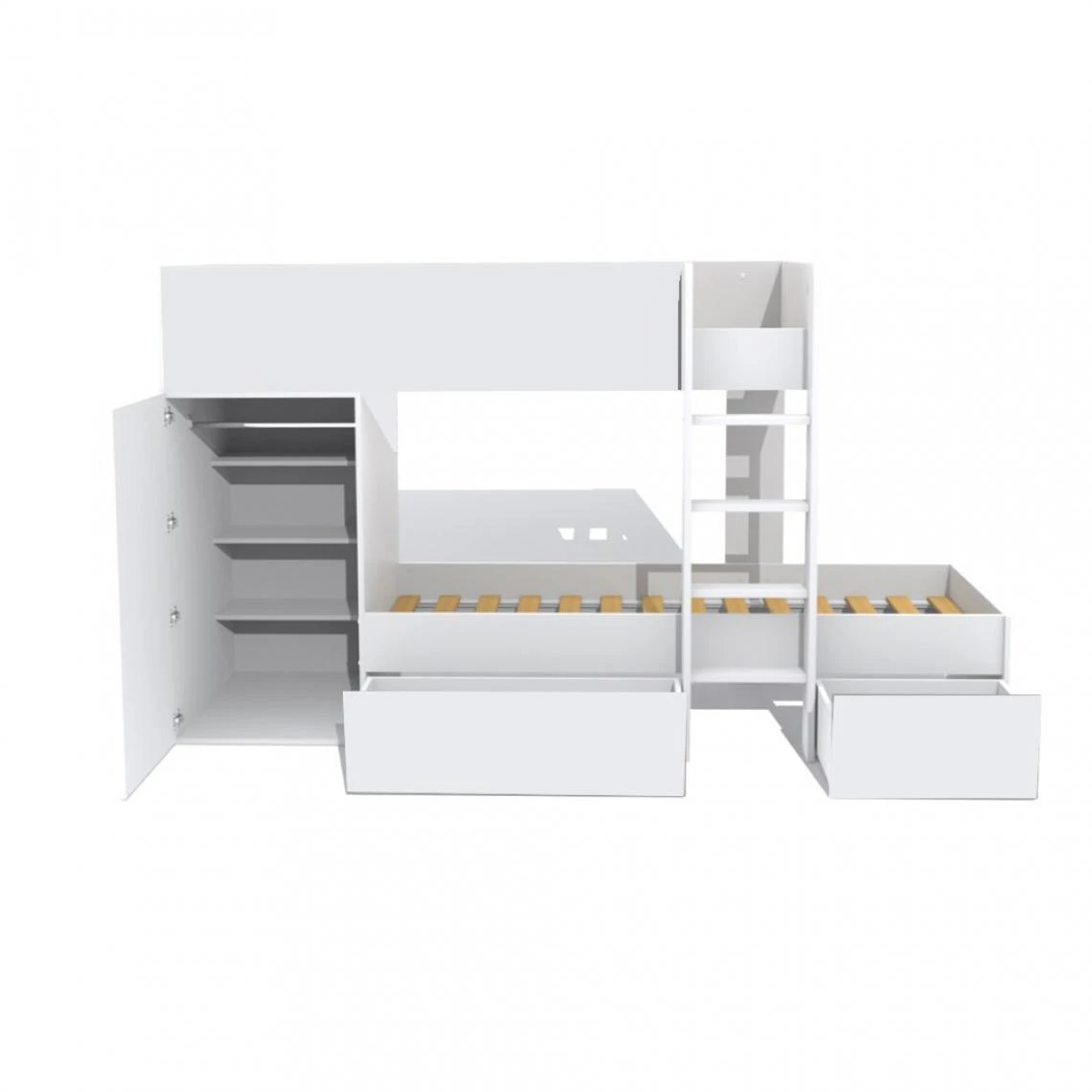 Points forts Le Quai Des Affaires Lit superposé TWIN 90×190 avec armoire et tiroirs + 2 sommiers / Blanc