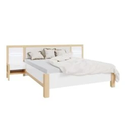 Alliant style moderne et sens pratique, ce lit au design blanc et imitation chêne s’invite avec élégance dans une pièce de nuit. Il s’intègre en toute simplicité parmi un mobilier d’inspiration contemporaine. Fabriqué en panneaux de particules revêtus de papier décor, ce lit s’accordera sans fausse note avec votre décoration intérieure.