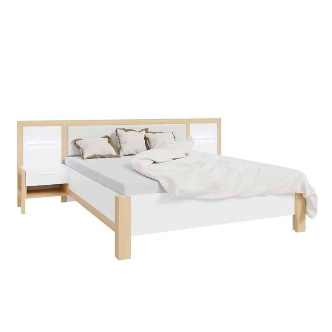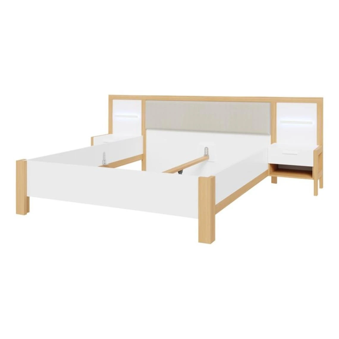 Points forts Linea Natura Lit 160×200 cm chevets et LED intégrés OMBRONE blanc et imitation chêne