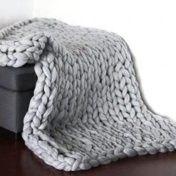 Marque Generique New Fait Main Chunky Tricoté Couverture Laine épaisse Ligne Décor ?…