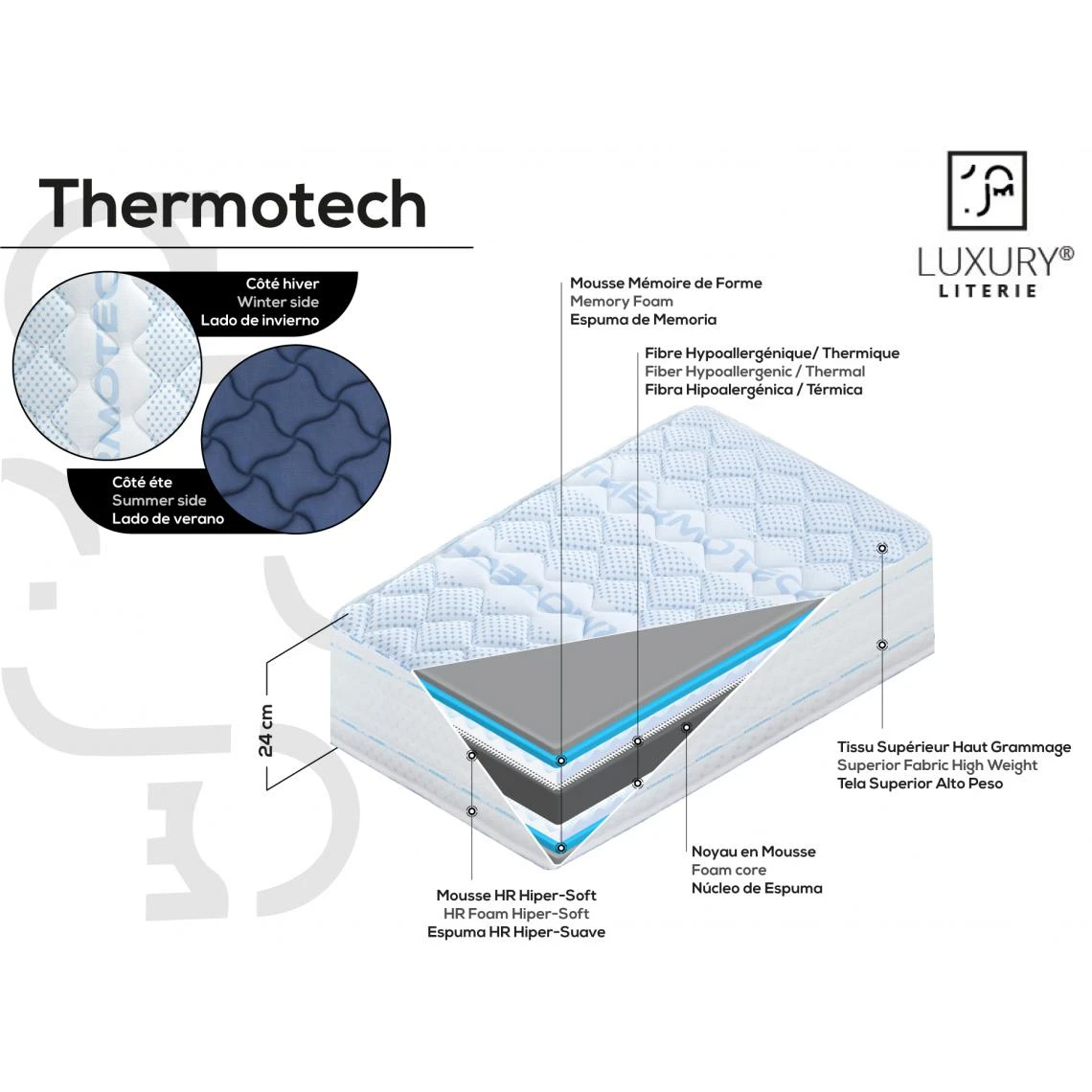 Luxury Literie Matelas 140×190 Cm Thermotec Dream