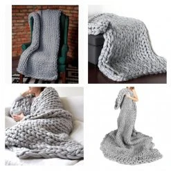 Points forts marque generique 2 Pièces Grande 100x80cm Grosse Couverture En Laine En Laine Tricotée Pour Lit De Confortable