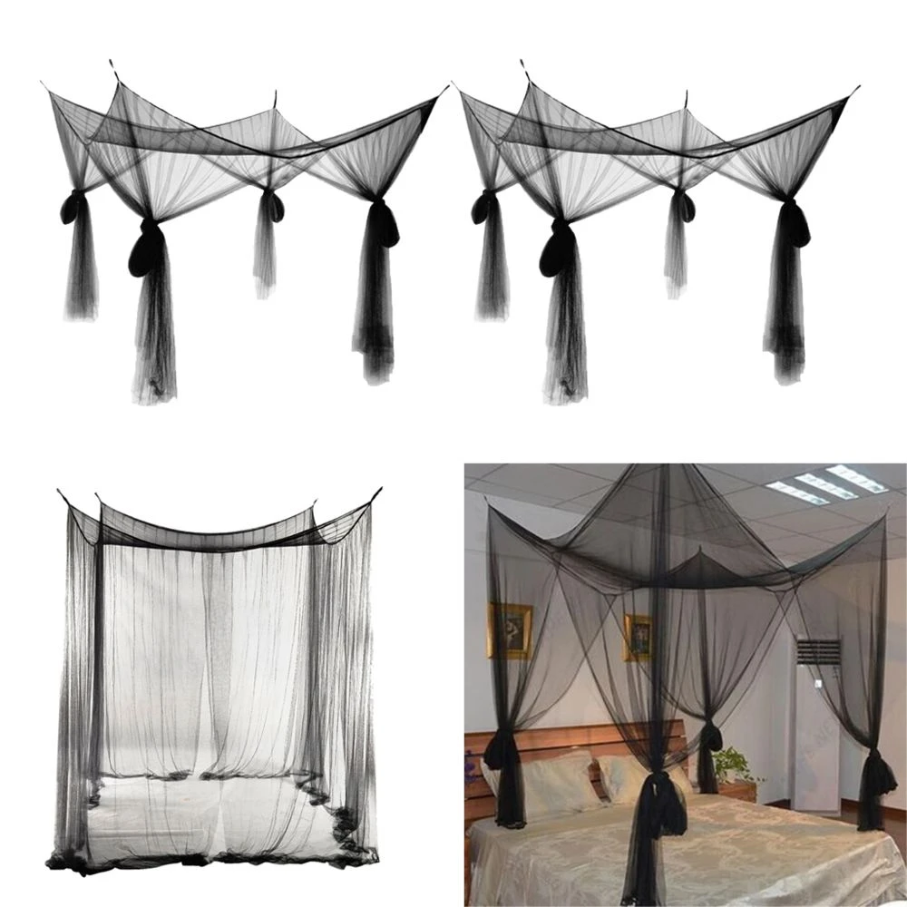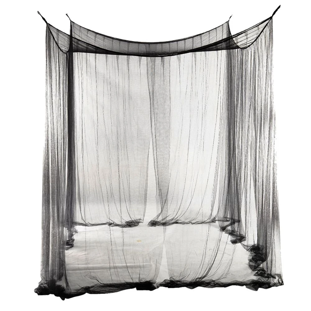 Points forts marque generique 2pcs Noir 4 Poteaux De Lit à Baldaquin Drapé Cantonnière Fine Maille Moustiquaire Pour L’été