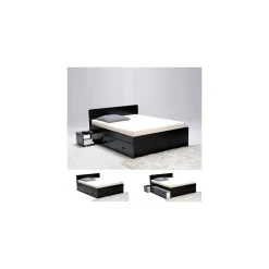 Lit double XENIA 140 x 190 cm Structure en panneau MDF + panneau de particules. Finition : laqué noir. 2 tiroirs et 2 chevets intégrés. Livré démonté, sans sommier, sans matelas, ni accessoires.