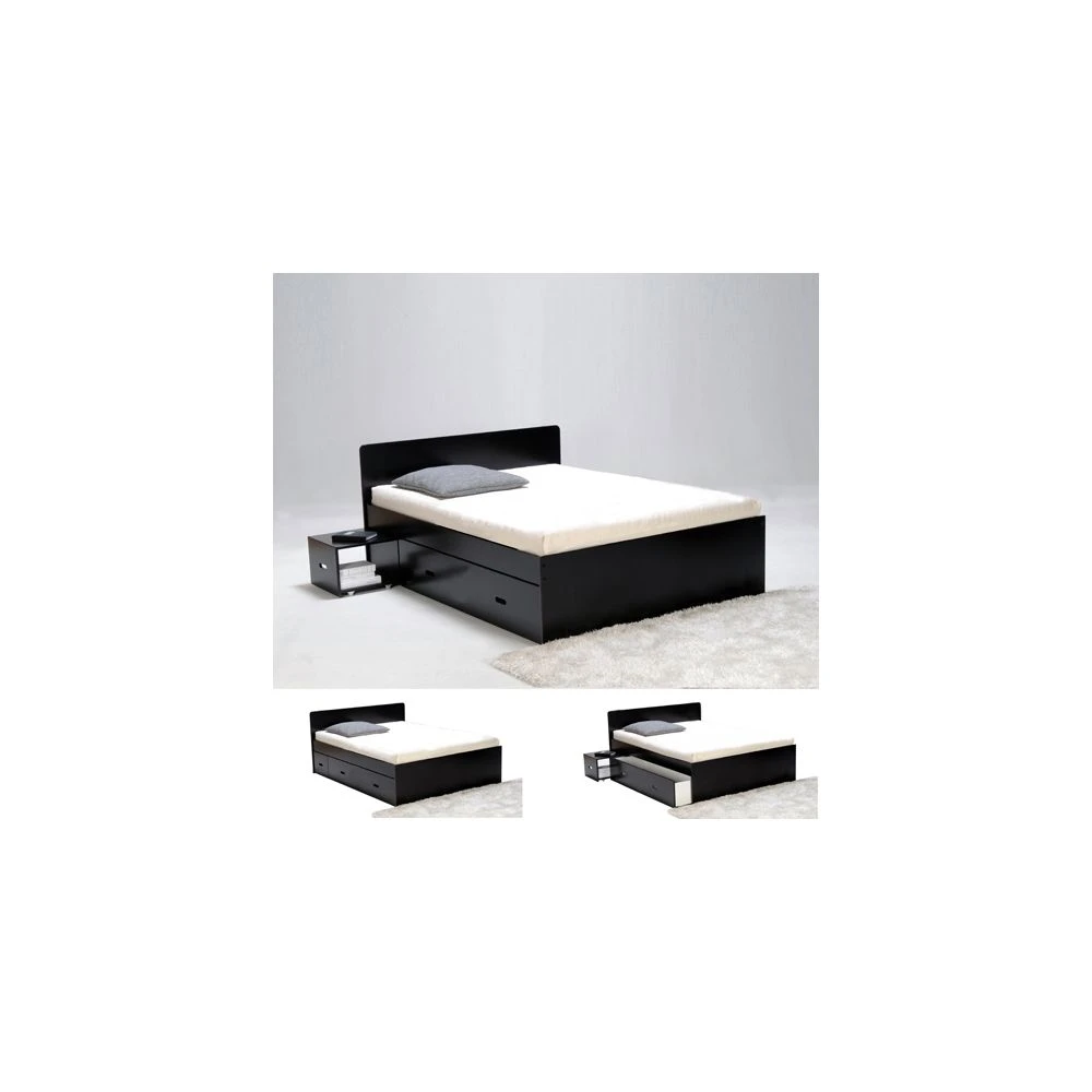 Points forts marque generique Lit double XENIA 140×190 + 2 chevets + 2 tiroirs / Noir