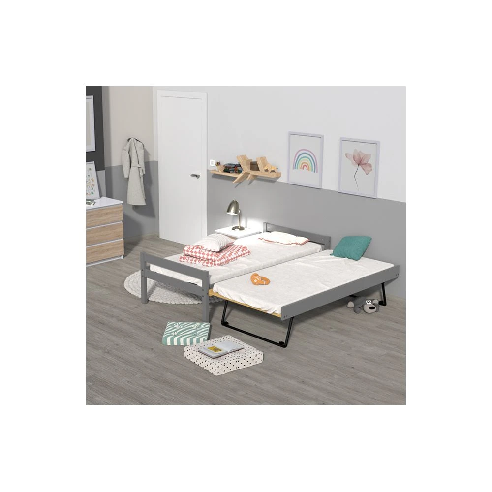 Points forts marque generique Lit gigogne JUSTIN 90×200 + 2 sommiers + 1 tiroir-lit / Gris