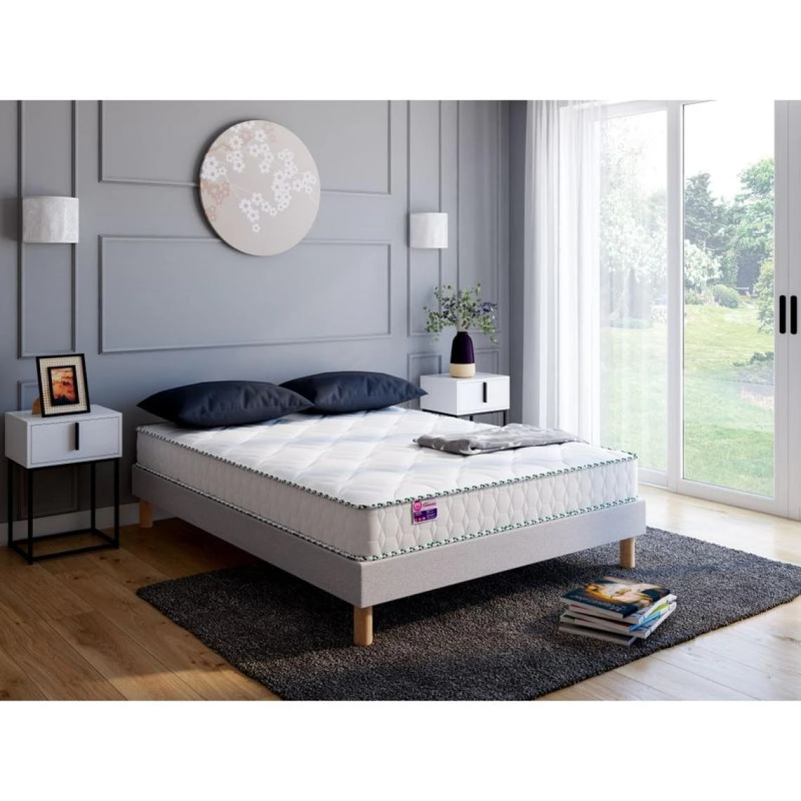 .Soutien ferme. Accueil ferme. . Coutil :stretch 100% polyester (plateau : 180 g, plate-bande : 200 g). . Mousse :polyuréthane. . Densité :25 kg/m³. . Garantie :5 ans , Pièces . Face hiver :fibres hypoallergéniques polyester + mousse de confort polyuréthane 18 kg/m³. . Face été :fibres hypoallergéniques polyester. . Couchage en cm :140×190. . Matelas roulé :non. . Epaisseur totale :20 cm. . Dispo pcs détachées donnée fournisseur :NC. .