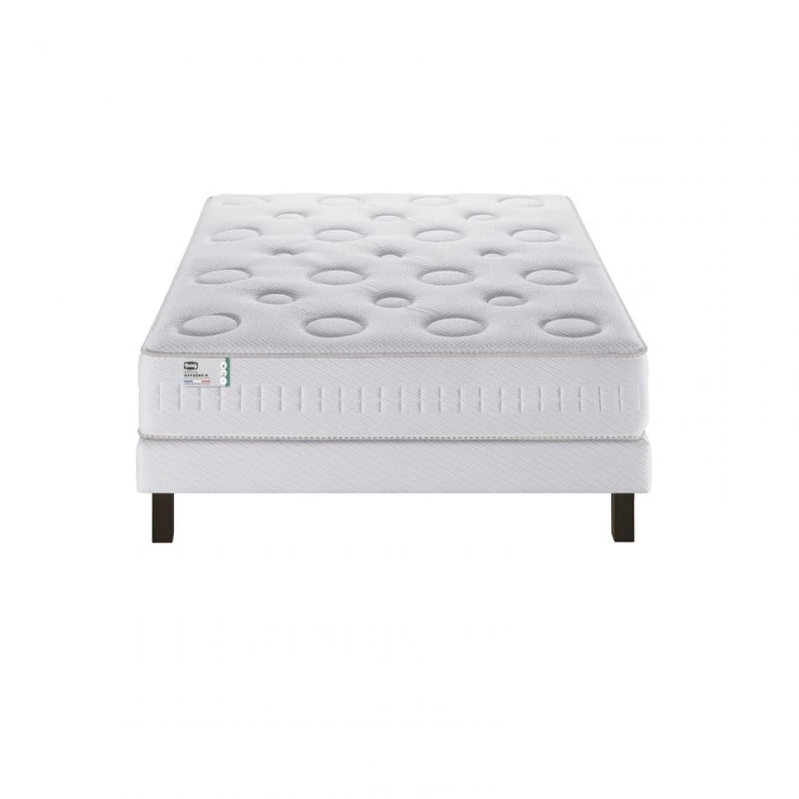 Une indépendance de couchage optimale qui limite les micro-réveils, vos mouvements ne réveillent pas votre partenaire.. L’acier des ressorts est composé de 90% d’alliage de fer recyclés pour un confort durable en favorisant l’économie circulaire.. La mousse soft vous assure un accueil moelleux tout en douceur pour un sommeil reposant et réparateur.. Lassociation de tissu à base de viscose et de ouate Dacron® éco² assure un haut pouvoir d’absorption et d’évacuation de l’humidité, favorisant la bonne circulation de l’air.. Tissu micro-aéré et complexe ouatiné en fibres polyester recyclées : une parfaite hygiène du matelas, action dauto-ventilation et de régulation de la température en toutes saisons..