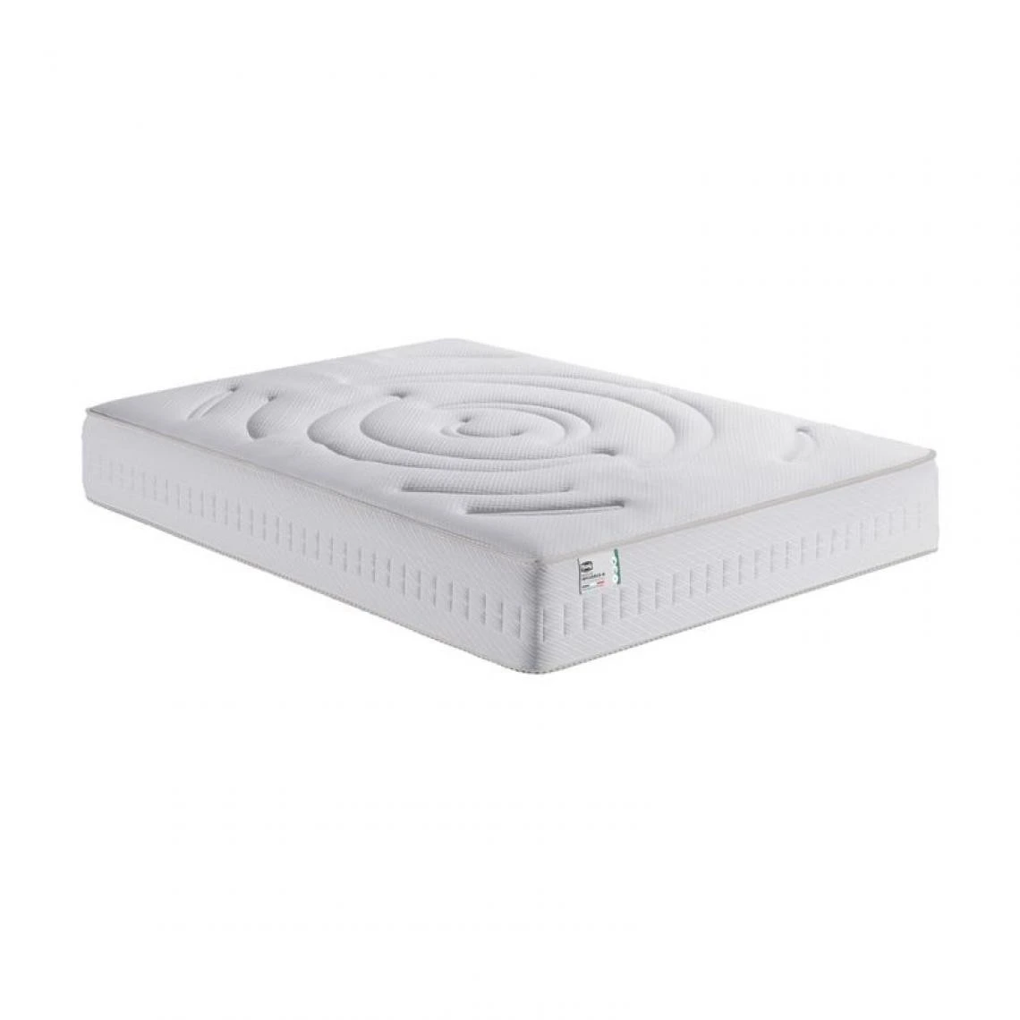 Une indépendance de couchage optimale qui limite les micro-réveils, vos mouvements ne réveillent pas votre partenaire.. L’acier des ressorts est composé de 90% d’alliage de fer recyclés pour un confort durable en favorisant l’économie circulaire.. Le latex perforé sadapte parfaitement à toutes les morphologies et à toutes les positions du sommeil. Ses alvéoles offrent une excellente ventilation naturelle.. Lassociation de tissu à base de viscose et de ouate Dacron® éco² assure un haut pouvoir d’absorption et d’évacuation de l’humidité, favorisant la bonne circulation de l’air.. Tissu micro-aéré et complexe ouatiné en fibres polyester recyclées : une parfaite hygiène du matelas, action dauto-ventilation et de régulation de la température en toutes saisons..